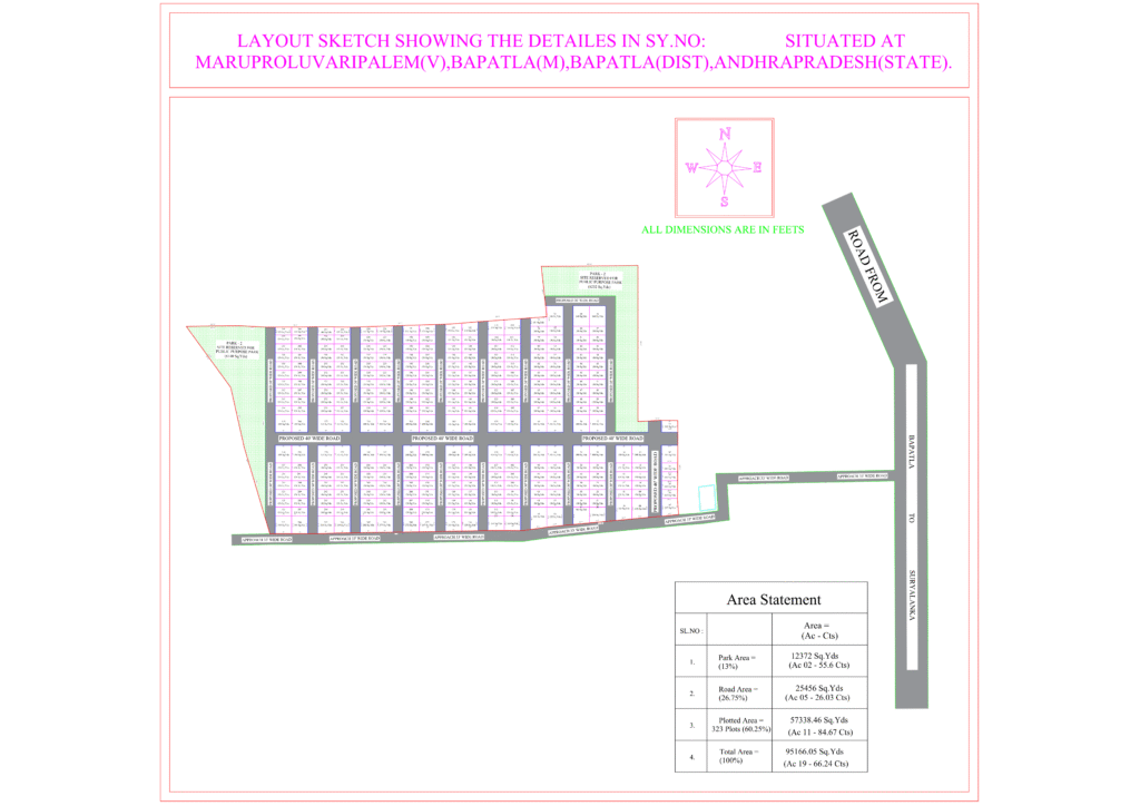| Road Area | 26.75% | 25,456 Sq. Yds | Ac 05 – 26.03 Cts |